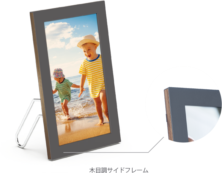 フレーム上部に内蔵されたジェスチャーセンサーに向かって手をかざして動かすだけで、写真を変更したり、撮影した場所や日時の詳細を表示することができます。ディスプレイへの接触がないため、画面表面を傷つけたり、指紋が付く心配がありません。