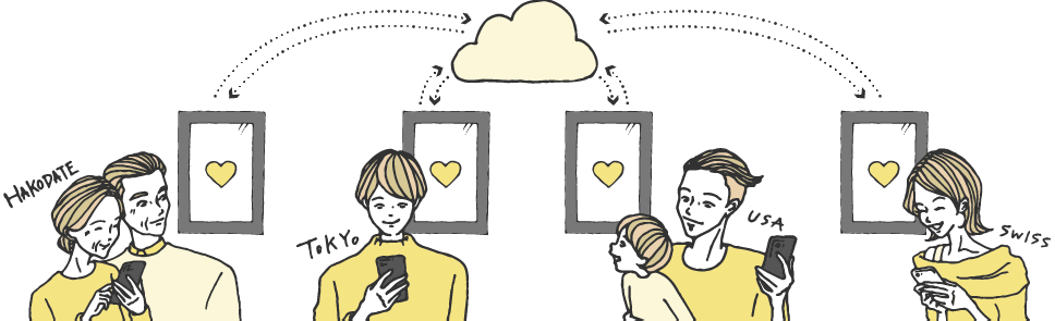 スマートフォンのフォトアルバムを、 自分や大切な人のフレームとリンクさせると、 スマートフォンのアルバムに写真が追加されるたび、Meuralが自動で変更を同期します。いつでも最新の写真を届けましょう。