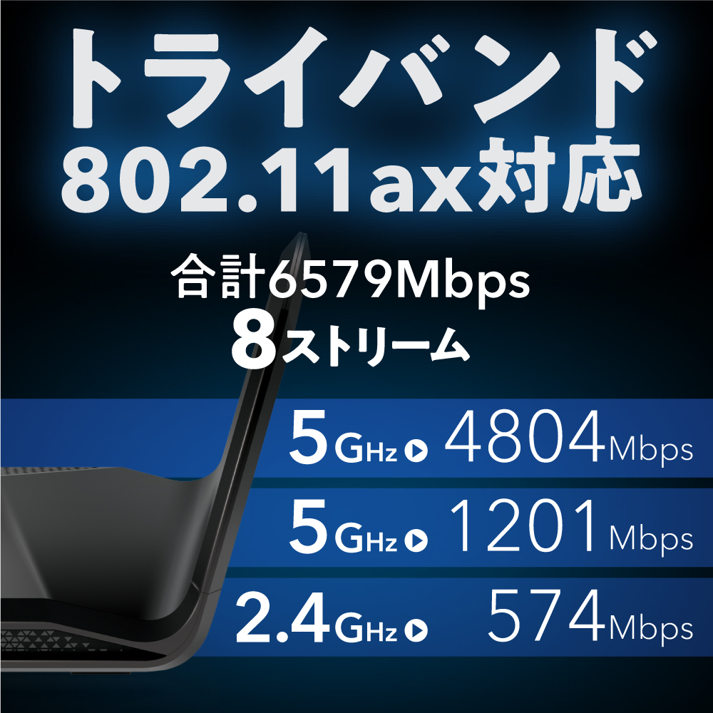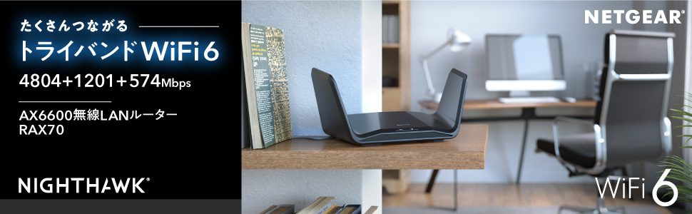 NightiawkはスマホやWebでの設定や管理がしやすく、見た目もカッコいい。この機種は低価格でWi-Fi6の8ストリームに対応している為、旧型のWi-Fiルーターからの入れ換えにおすすめです。