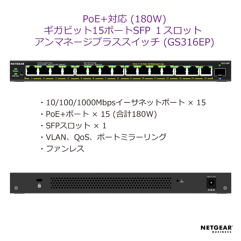 GS316| GS316-100JPS| ¥10,010(税込) POE+対応 (115W) ギガビット16ポート アンマネージスイッチ| GS316P-100AJS| ¥31,500(税込) POE+対応 (183W) ギガビット16ポート アンマネージスイッチ| GS316PP-100AJS| ¥35,200(税込) PoE+対応 (180W)ギガビット15ポートSFP 1スロット アンマネージプラススイッチ| GS316EP-100JPS| ¥36,000(税込) PoE+対応 (231W)ギガビット15ポートSFP 1スロット アンマネージプラススイッチ| GS316EPP-100JPS| ¥42,000(税込)