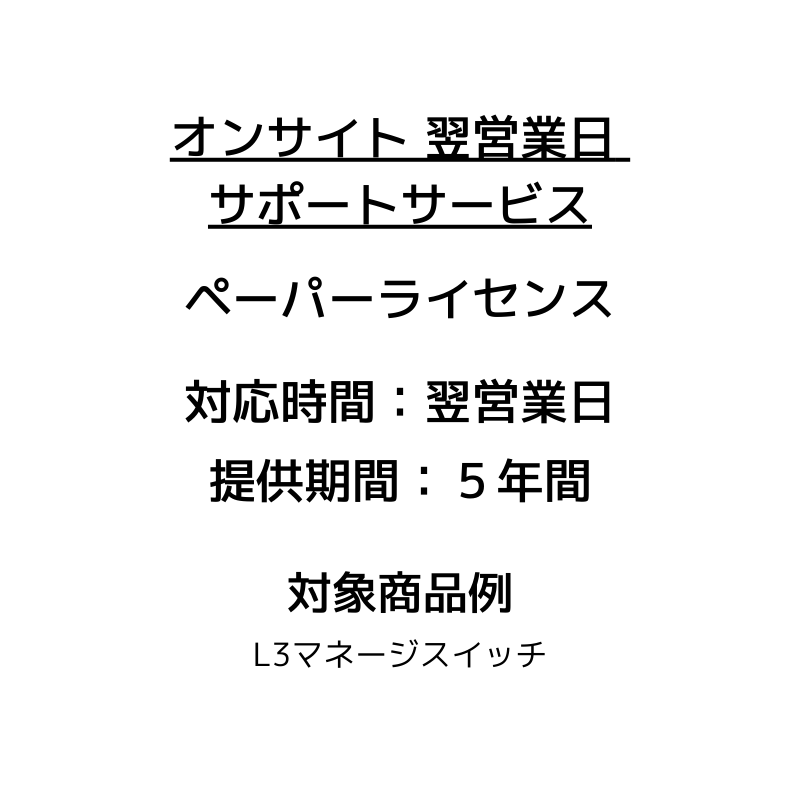 商品情報 【オンサイトサポートサービス 翌営業日 5年間 ペーパーライセンス】 サポートの詳細はこちらをご確認ください。 https://www.jp.netgear.com/Supportinfo/about-fbs/fbs-price.aspx また、ペーパーライセンスを紛失した際は下記カスタマサポート窓口へお問い合わせください。 https://www.netgear.jp/supportInfo/Contact/