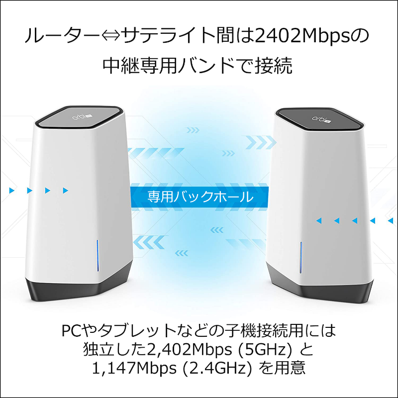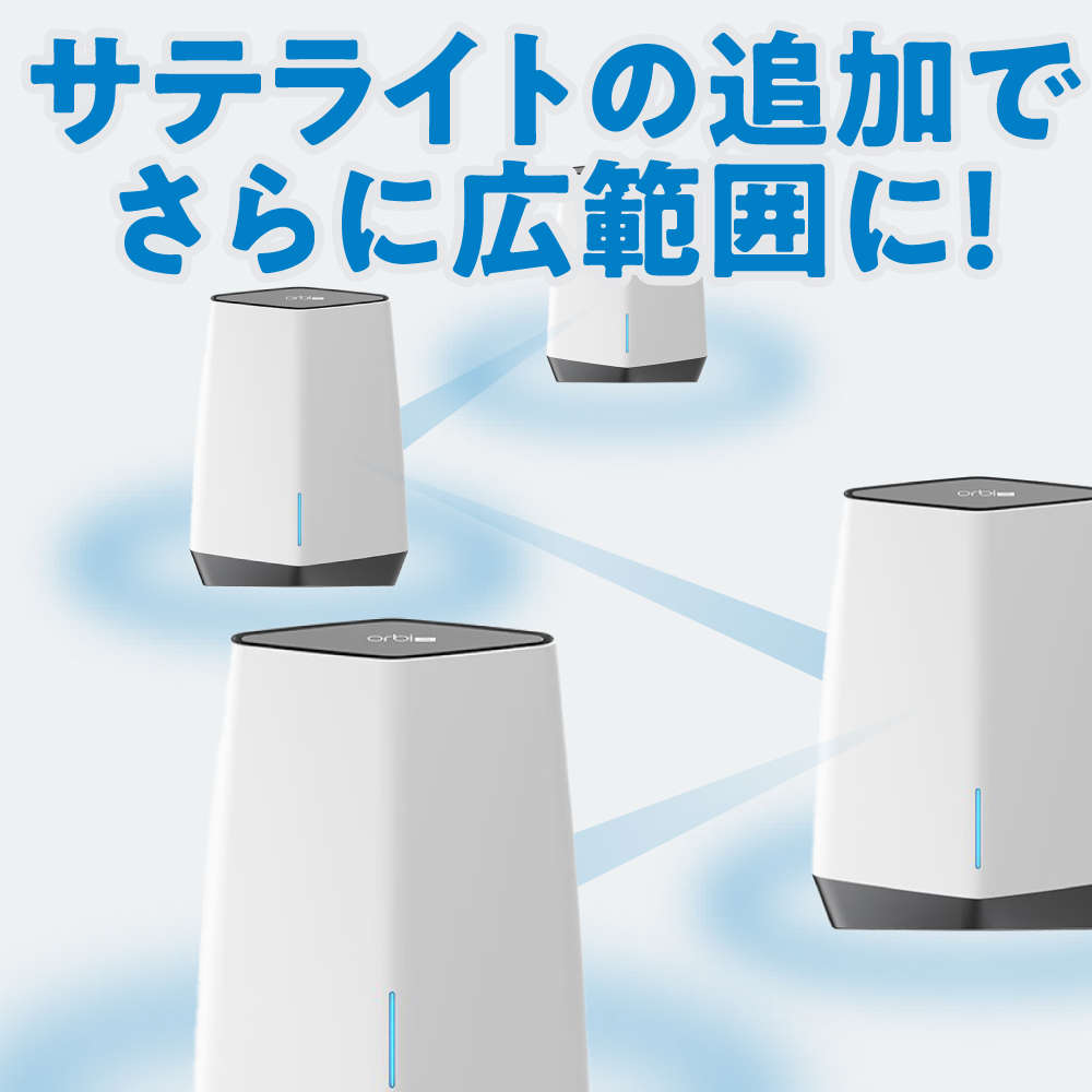Orbi Pro WiFi 6 2台セット| SXK80-100JPS| ¥101,300(税込) AX6000 Orbi Pro WiFi 6 ルーター| SXR80-100JPS| ¥83,400(税込) AX1800 Orbi Pro WiFi 6 Mini 2台セット| SXK30-100JPS| ¥47,200(税込) Orbi Pro WiFi 6 追加サテライト| SXS80-100JPS| ¥79,900(税込)