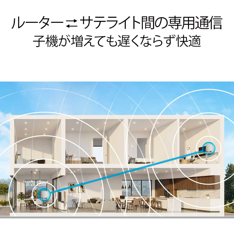 メッシュWiFiはどの部屋でも途切れずに接続できるのが大きなメリットになっております。