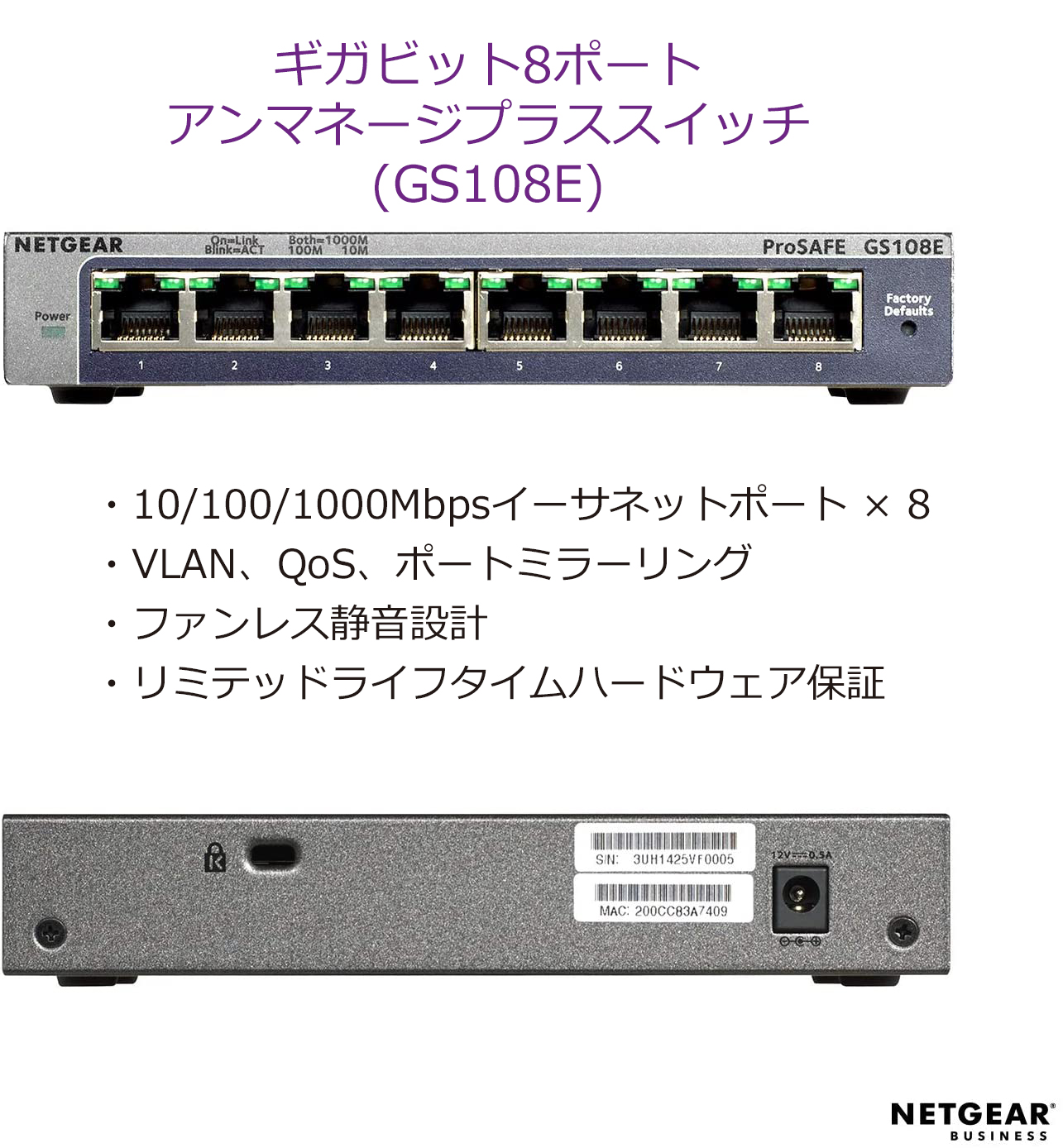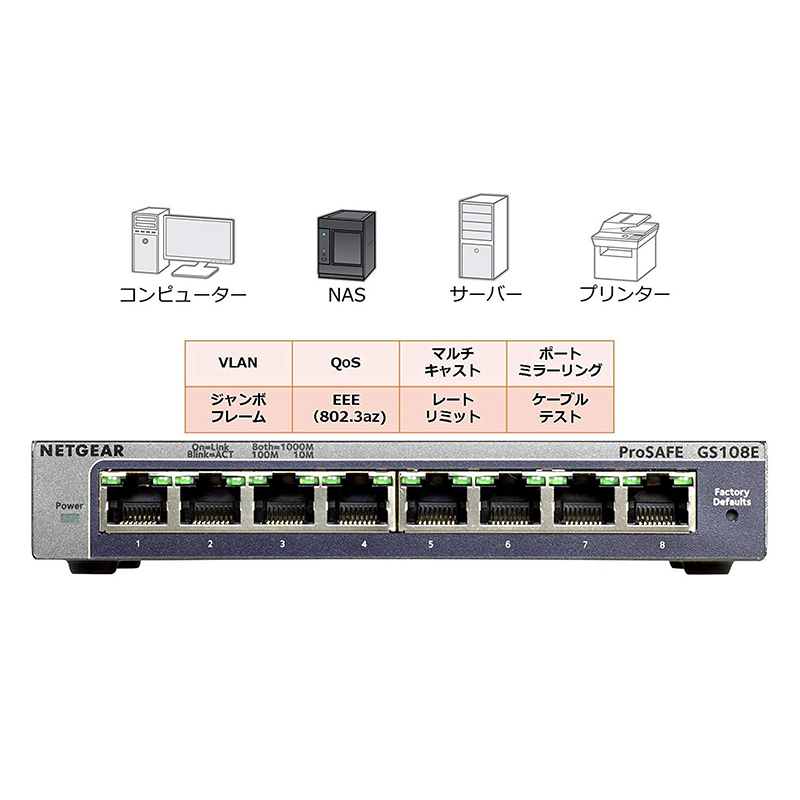 ギガビット8ポート アンマネージスイッチ| GS108-400JPS| ¥10,100(税込) PoE+対応 (123W) ギガビット8ポート アンマネージスイッチ| GS108PP-100AJS| ¥25,900(税込) ギガビット8ポート アンマネージプラススイッチ| GS108E-300JPS| ¥13,000(税込) PoE対応 (53W) ギガビット8ポート アンマネージプラススイッチ| GS108PE-300JPS| ¥16,700(税込) GS108T| GS108T-300JPS| ¥17,400(税込)