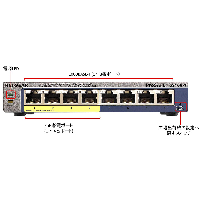 ギガビット8ポート アンマネージスイッチ| GS108-400JPS| ¥10,100(税込) PoE+対応 (123W) ギガビット8ポート アンマネージスイッチ| GS108PP-100AJS| ¥25,900(税込) ギガビット8ポート アンマネージプラススイッチ| GS108E-300JPS| ¥13,000(税込) PoE対応 (53W) ギガビット8ポート アンマネージプラススイッチ| GS108PE-300JPS| ¥16,700(税込) GS108T| GS108T-300JPS| ¥17,400(税込)