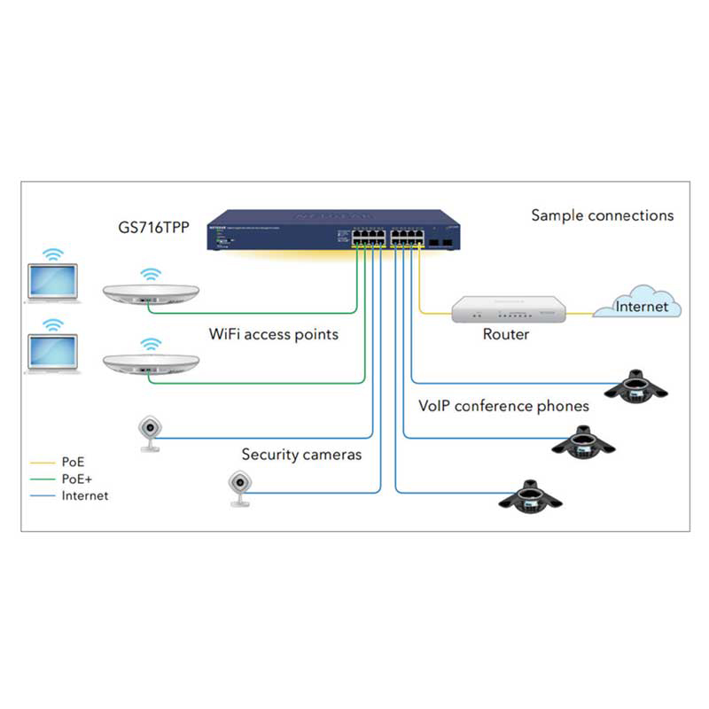商品情報 【ギガ16ポート (PoE+ x16 180W/SFPx2) スマートスイッチ】 メーカーサイトはこちら ●特長 ・全16ポートがPoE (IEEE802.3af)/PoE+ (IEEE802.3at)対応 (合計180W) + SFPx2ポート スイッチングハブ。 ・Insightアプリでどこからでも設定変更や監視が可能な、クラウド管理機能を搭載。 ・【Insight クラウド管理アプリ対応】NETGEAR Insightは初期設定から監視・管理・運用までアプリで簡単に行え、Insight対応のネットギア製品を一括で管理する事も可能。 ・スタンドアロンモードに設定することで、通常のスマートスイッチとしても使える。 ・Insightアプリ、Web GUIどちらも日本語での表示が可能。 ・VLAN、トランクポート、IP ACL、802.1x、レート制御、SNMPv1, v2c, v3対応 ・ラックマウントキット付属 ●製品保証 ・【安心の日本語サポート】リミテッドライフタイム保証のため長期にわたり安心して使える。
